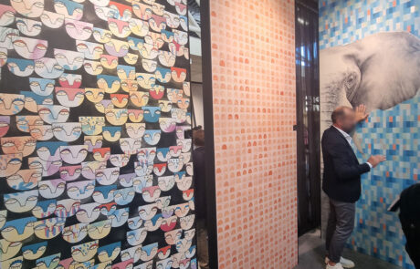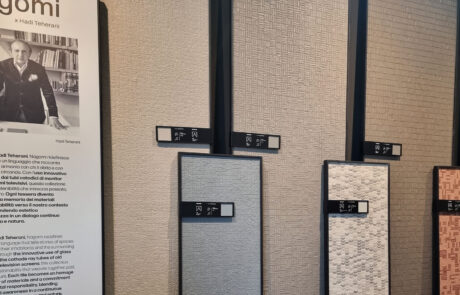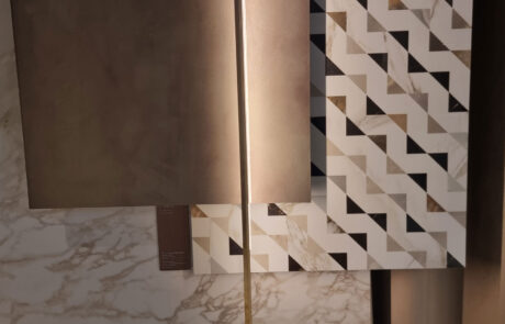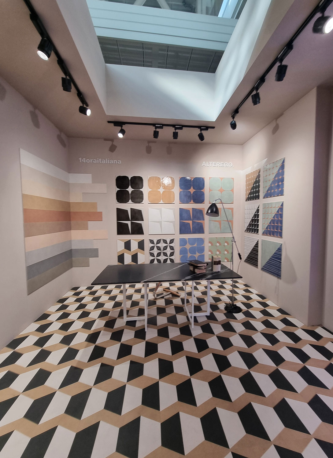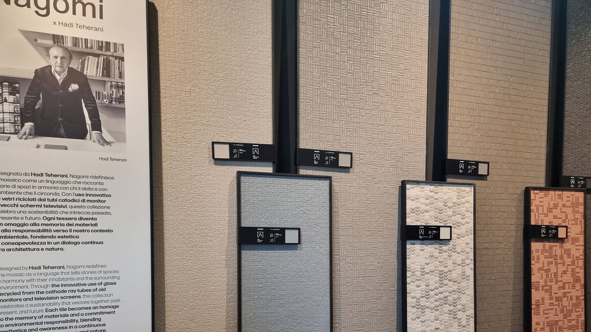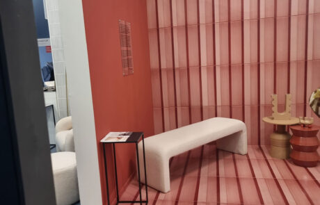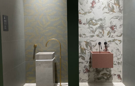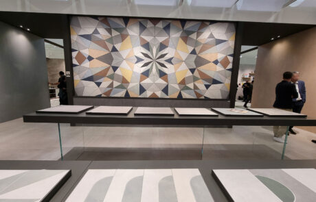 The original covering with spatula reliefs Homey Paper Clay – by Piemme with Paola Peronetto stands out, taking up the ceramic materiality of its design objects (vases and lamps) present on the stand to accompany (walk together with) the covering. Also highlighted is Nok, an articulated and original proposal by 41042, sizes from 120×120 and below, between 2 textured backgrounds, ethno-animalier graphics and disruptive mosaics.