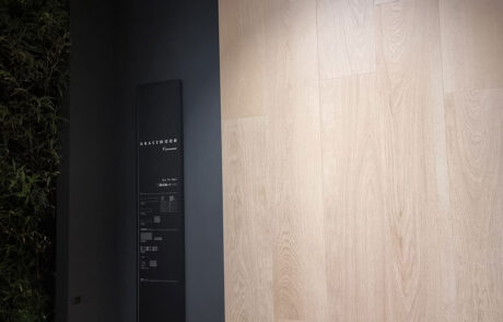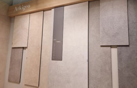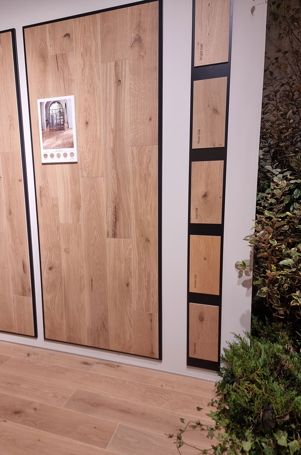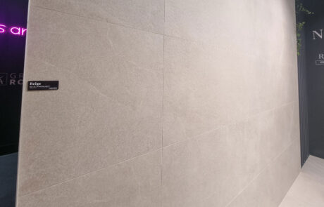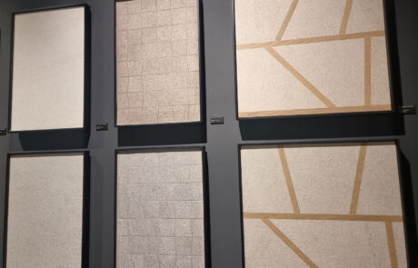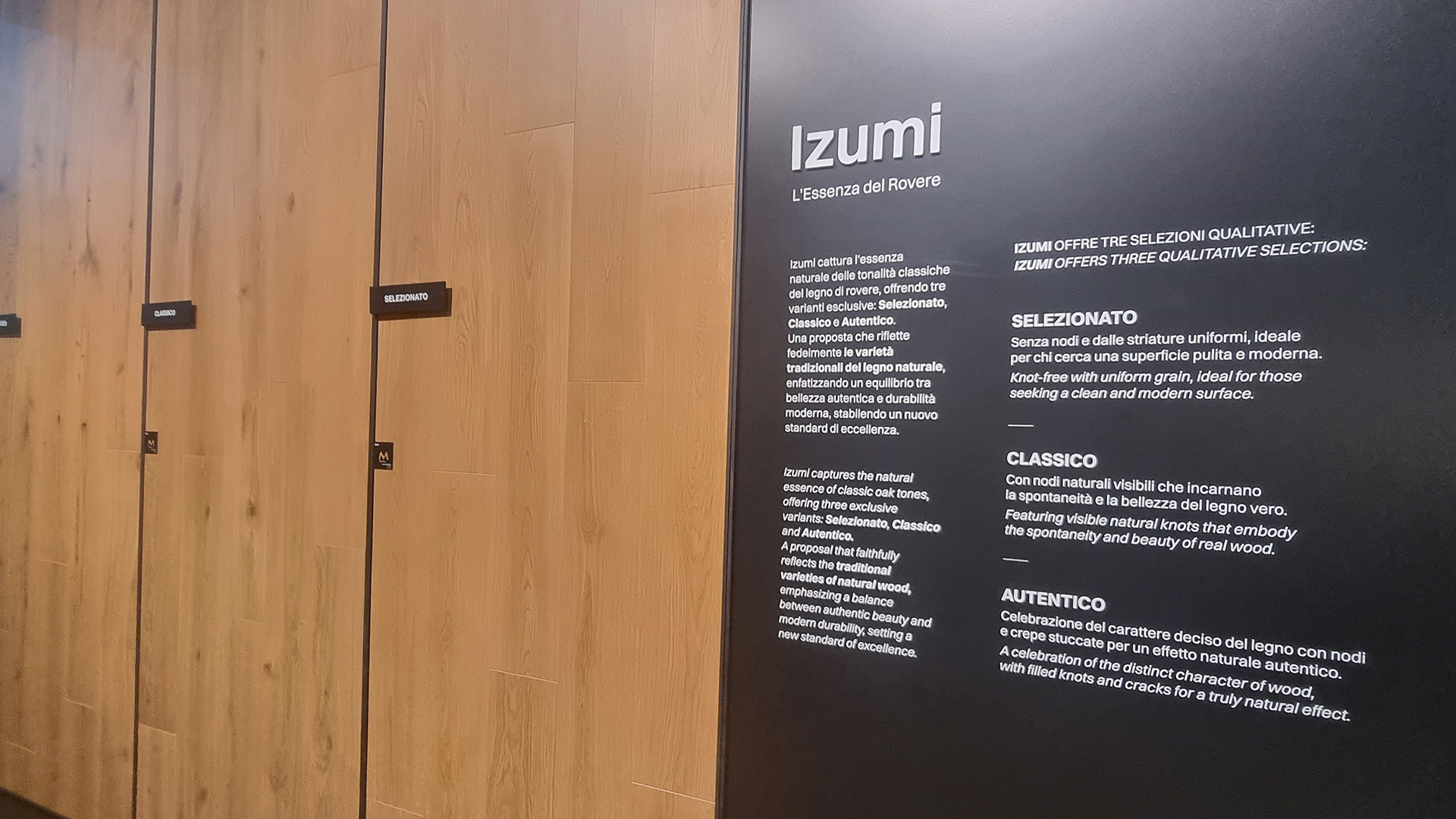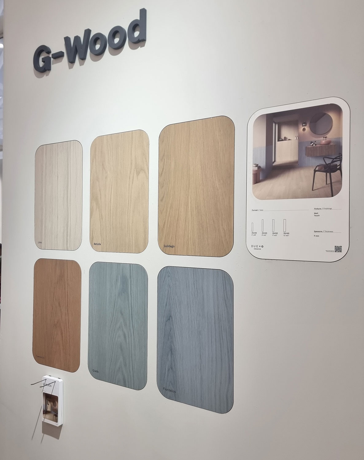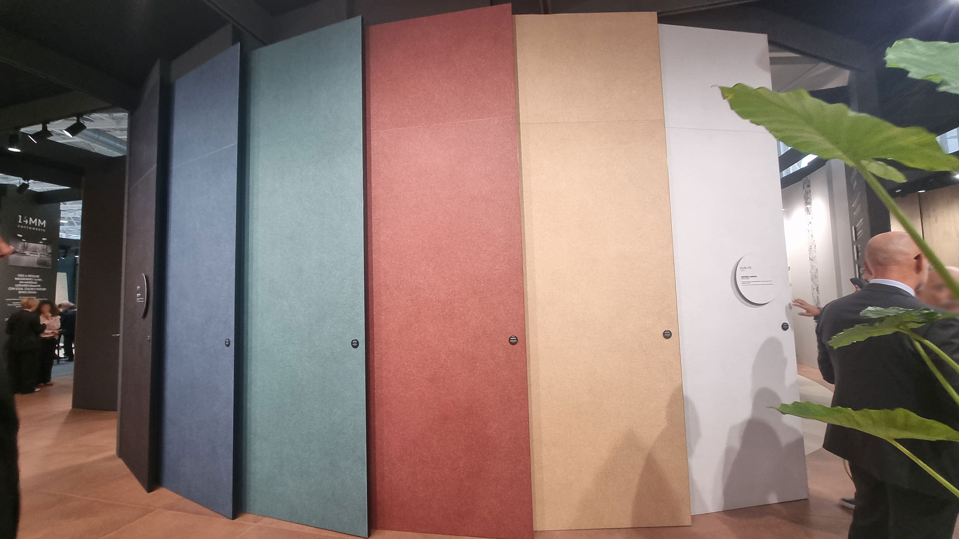 In the general calm, Mirage plays the heavy load: ReSource, with over 60% pre-consumer recycled material. Plenty of space in the stand for an important range with 8mm thickness. If the product gets going, it will be necessary to find enough waste to recycle.