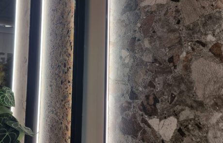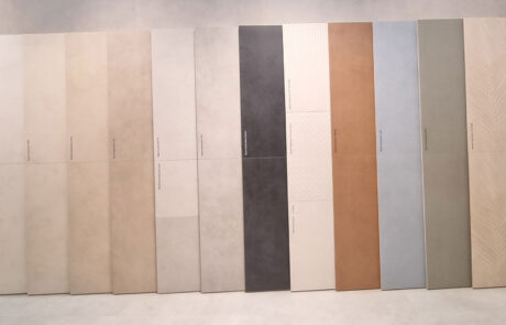 Various elaborations that transfigure terraces, agglomerates and strains (stumps / stocks) reinventing their look. Using relief technologies, new aesthetic expressions are born: Sant’Agostino-Glow, COEM Fioranese with Alchimie and I Ciottoli in the macro-micro stone/sand version, Cerdomus Neoclassica macro-medium.