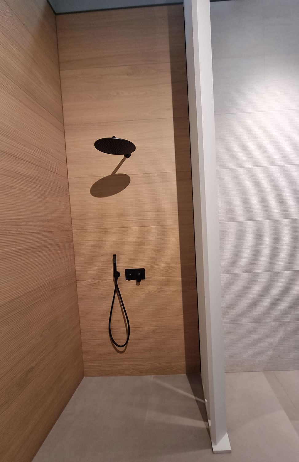 The sophistication increases in degree when the tactile aspect (hand-foot test) is added to the anti-slip aspect (crash test with side B). And here we have gender fluid surfaces, smooth and cleanable, which when dry are errenove R9 but with water the grip starts and they become erreundici R11 and therefore are good inside and out (in-aut) thanks to the magical nanogranules (the same as in whitening toothpaste?).
