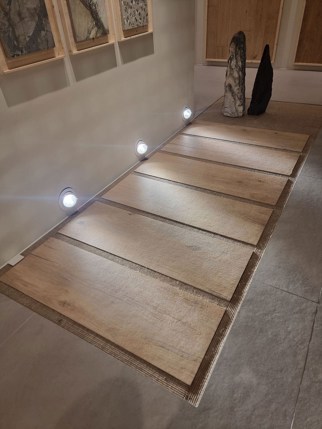 Lighting does not always help the public, some companies improve vision with ingenious tricks in grazing lighting (Cerdomus – Ascot -Del Conca). If not, you have to go cheek to cheek with the product and caress (cherish) it affectionately, it deserves it.