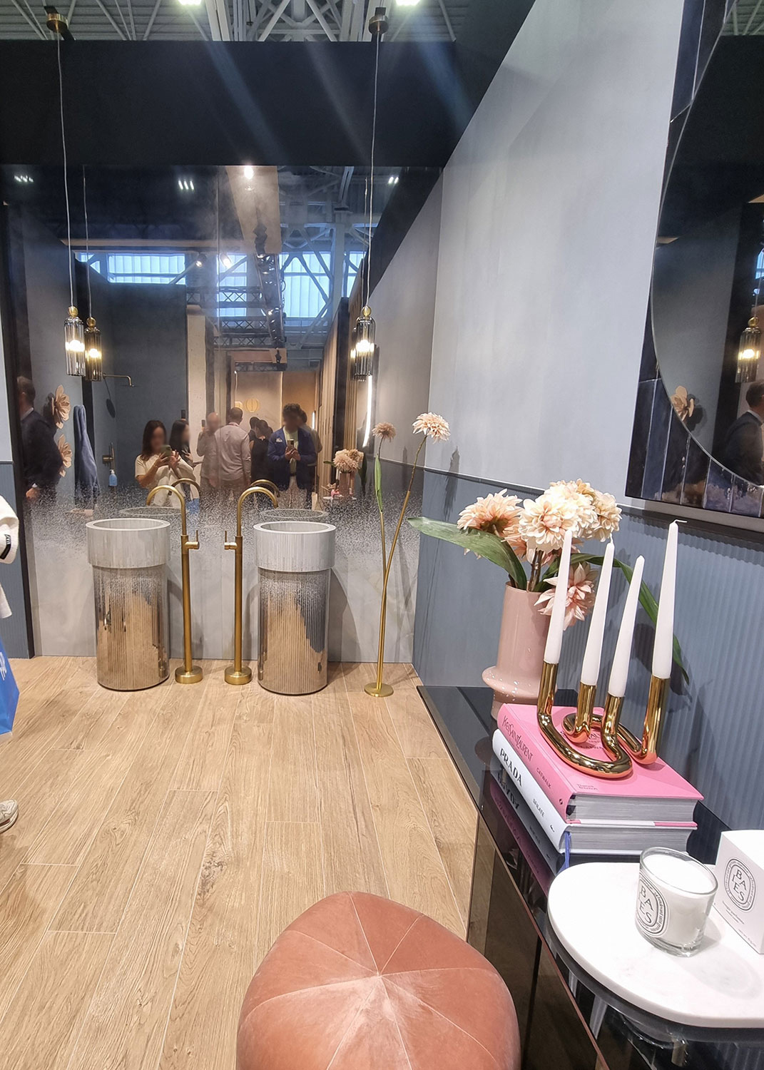 The most liked and pleasing stands usually add something, taking a further step: that of giving meaning to the entire stand, with a theme, an idea. Sometimes it is a concept that involves new products or conveys a corporate message of the company. Other times it is more of an expedient to make the exhibition pleasant and captivating. It is impossible (and dangerous) to mention them all, but there have been interesting ideas as reported by radio-cersaie since the first days.