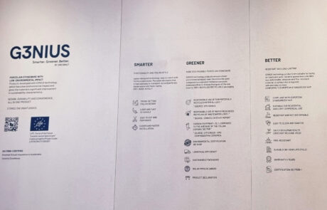 Panaria Group stands out for its quotas of compensated co2. The Gresmalt Group promotes the G3nius line with its own brands. Thin thickness and ultra-performing 5.0 factories determine a particularly low impact together with other advantages. In the meantime, Casalgrande Padana has re-greened the payoff: The Green Way To Pave.