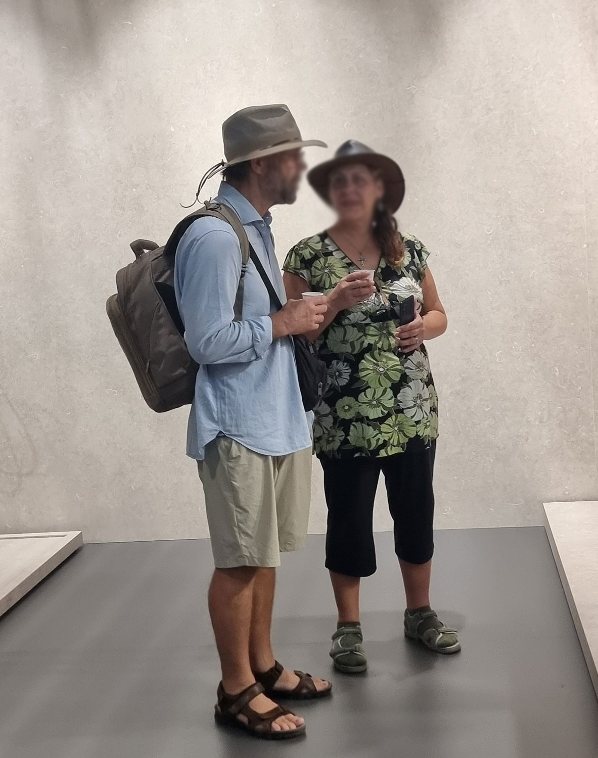 In the pavilions, very experienced visitors tenderly (soflty) approach the tile with their face (and smartphone) to scrutinize the surface effects, wide-eyed.