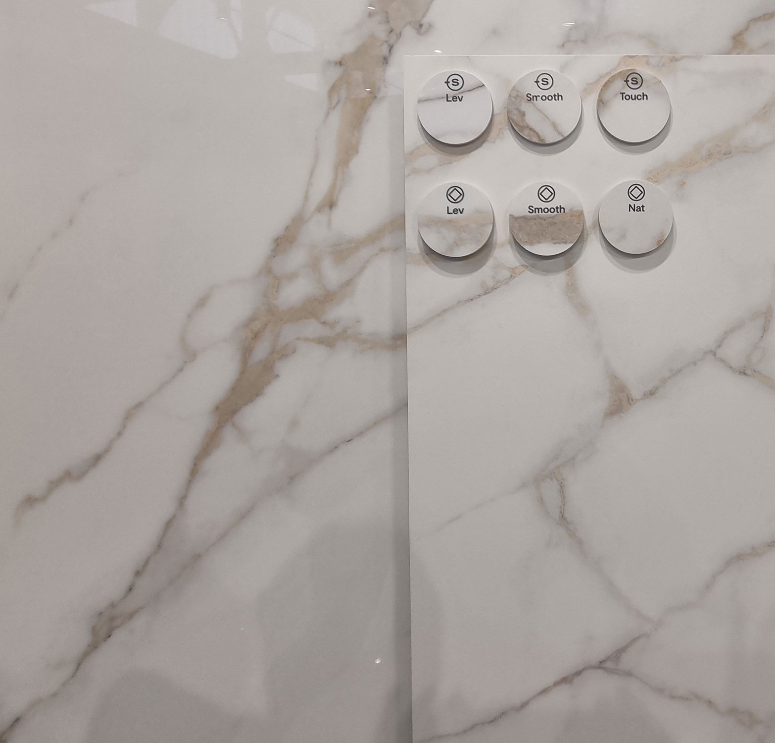 The white veins could not disappear, they are proposed again in a satin version with synchrony between structure and design, perhaps looking for less exploited expressions (Rondine, Panaria). The Calacatta-Barolo by ABK is courageous, well contextualized.
