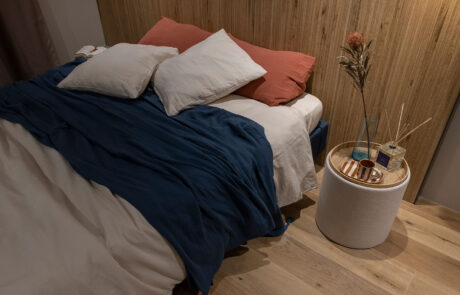 On the decorations front, weight is lost. The jungle of flowers and foliage has withered, the wallpapers are in some corners, the cement tiles are back in the attics to gather dust. More current signs and designs are blooming, like geometries and interweavings of materials. But above all, we play with composing sizes, colors and structures.