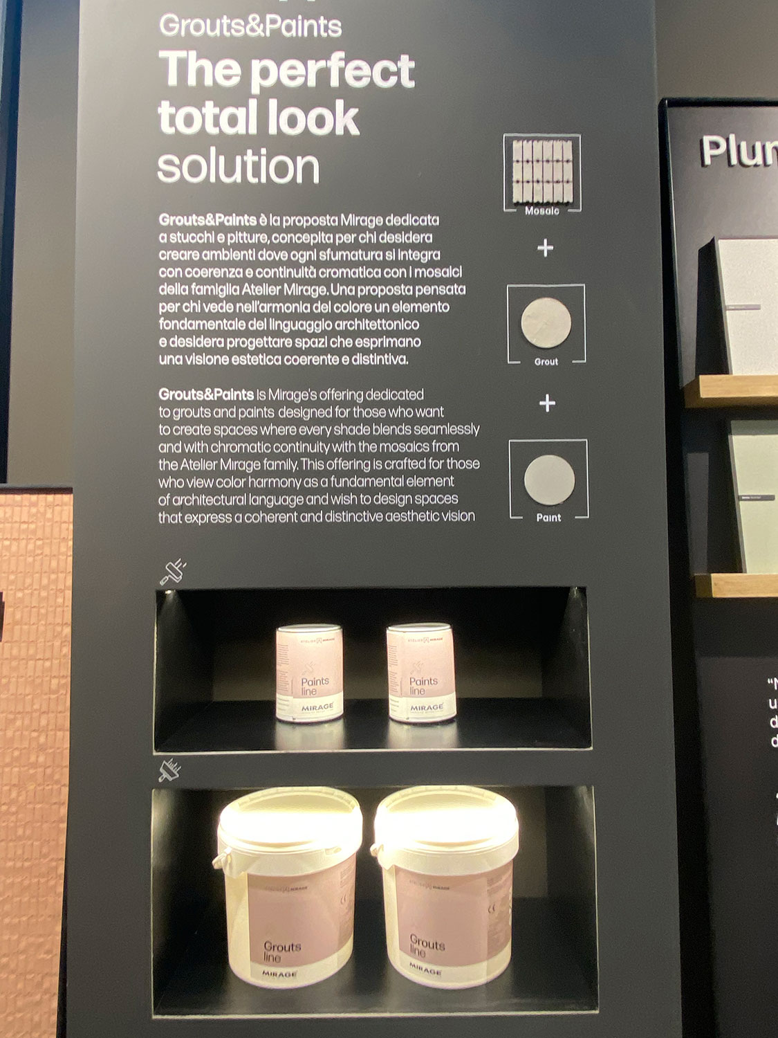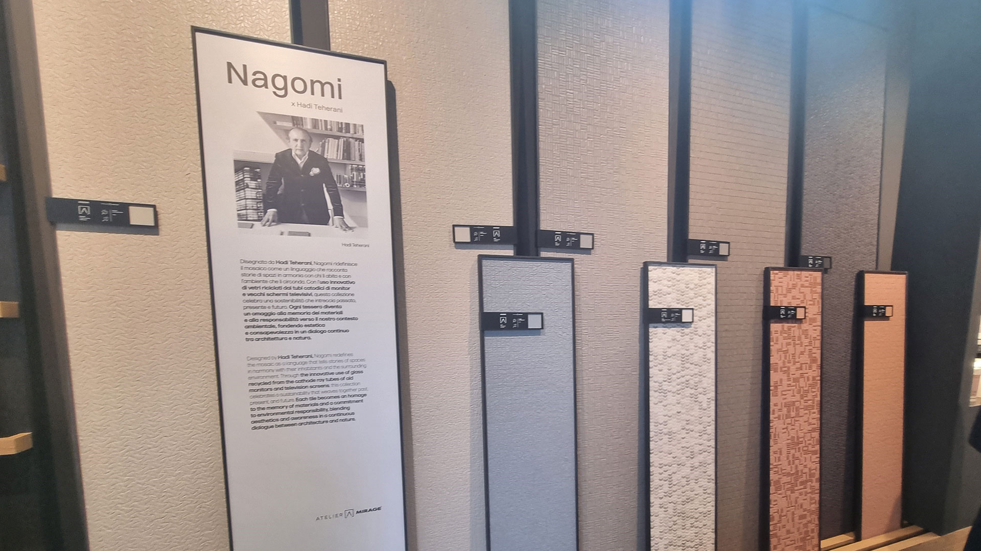Between craftsmanship and industrial products, Nagomi by Mirage is very effective, a research on the material (awarded) with a set of stuccos and paints in the same color, as are the irregular mosaics of 41042.