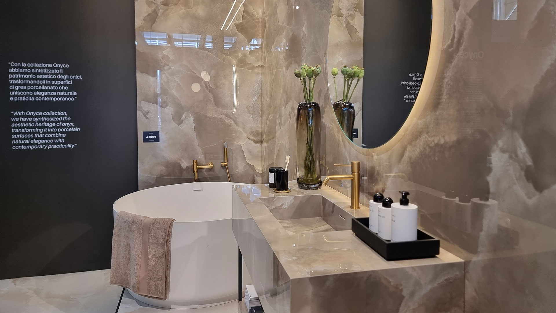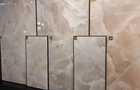As for design, there is a certain hype towards more nuanced graphics such as soft onyx. Less gaudy and showy onyx, toned down in the veining and pastel colors, winking at users with more measured tastes. Often they are graphics declined in various colors and not only reproductions of individual natural stones (so we take the distance ourselves from the concept of direct imitation of a specific marble).
