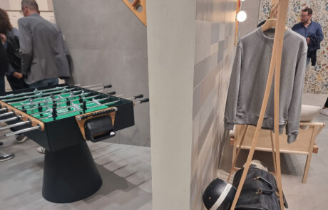 But this time a least common multiple is added, shown in every stand: the rigorously vertical décor “rigatini and rigatoni”. We all saw that rigato (striped) is on fire at the Milan fair, full of ribbed wood.